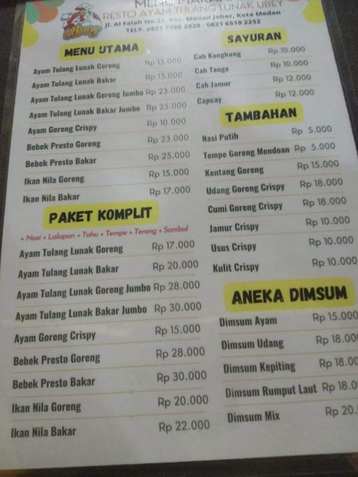 Medan, Sumut, (SHR) — Resto Kuliner Serba Lunak namanya Ayam Tulang Lunak UBEY Pertama buka di kota Medan, bertempat di Jalan Alfalah NO 22 B Kampung Baru Medan, Rabu (22/02/23).